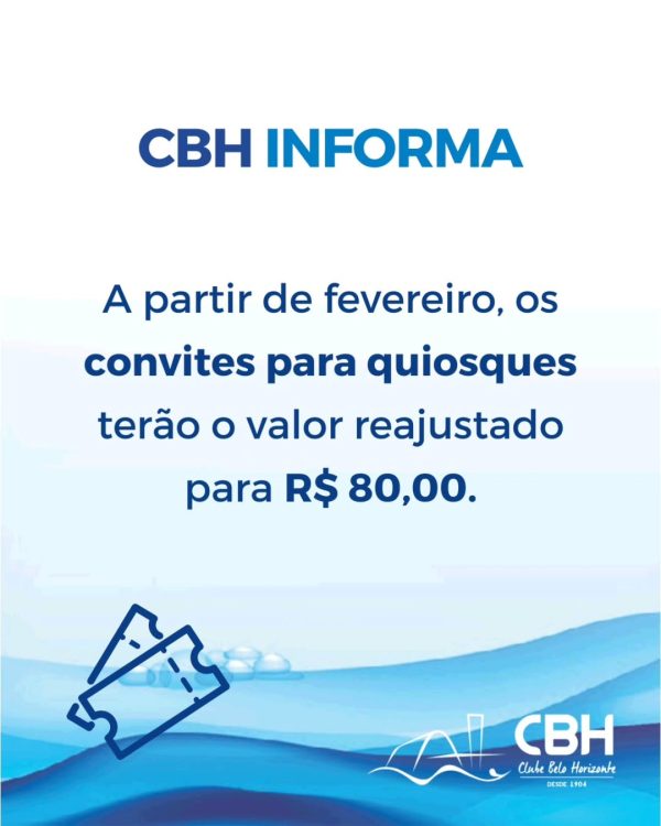 Os convites para eventos em quiosques terão um reajuste a partir de fevereiro, passando a ser de 80,00.