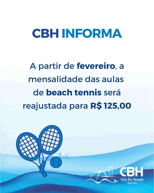 Após 3 anos sem alterações, será realizado um reajuste no valor da mensalidade do Beach Tennis.