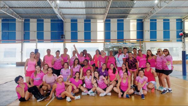 No último sábado (26/10), as quadras do Clube Belo Horizonte receberam o torneio Integração Outubro Rosa – Peteca Feminina Interclubes. Cerca de 40 mulheres vestiram suas camisetas rosas para participar de uma série de jogos de peteca, promovendo a conscientização sobre a saúde feminina.