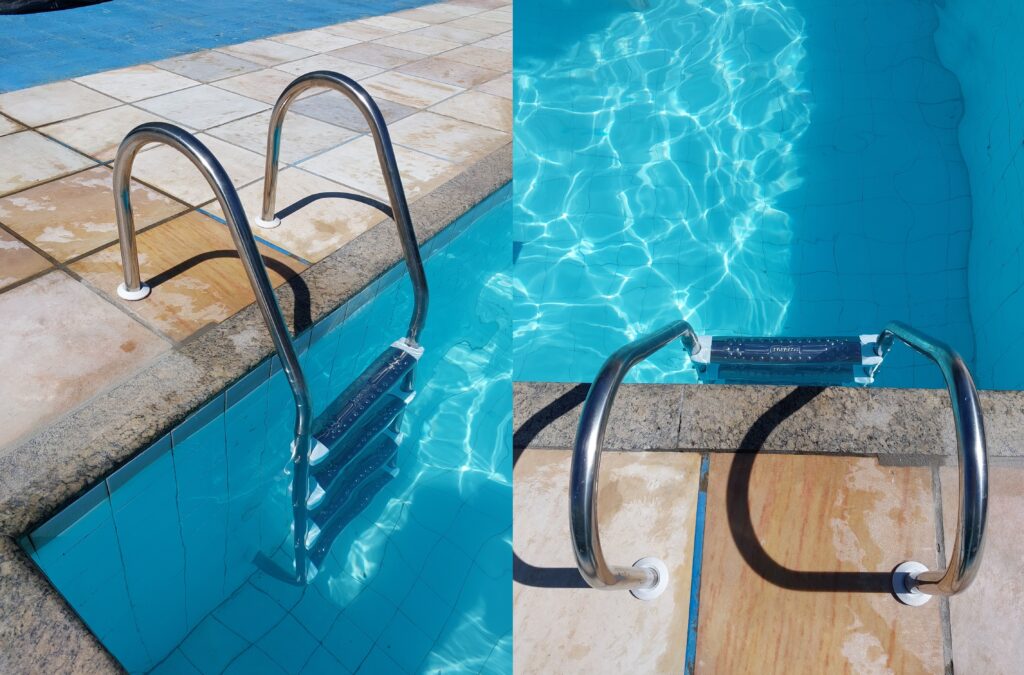 Chegaram os novos ombrelones, que foram encomendados no último mês. Uma escada nova foi comprada para a piscina de adultos, pois a antiga quebrou.