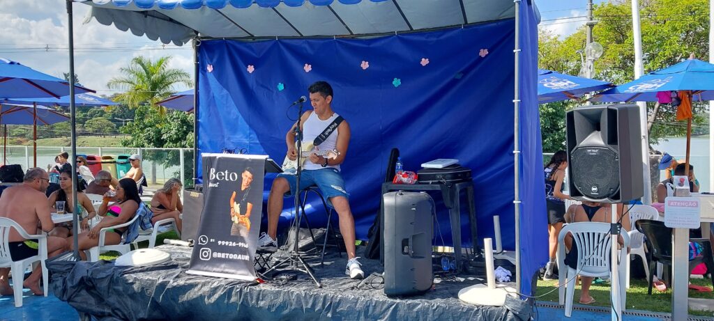 A tarde se encerrou com a apresentação ao vivo de Beto Gaunt, com repertório variado, na área das piscinas.