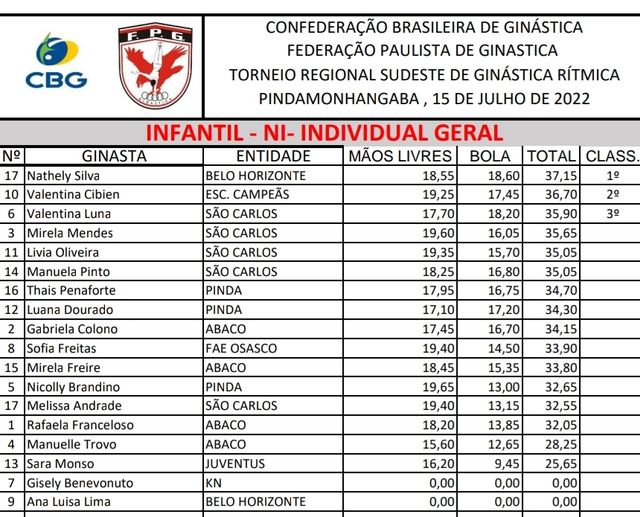 No dia 15/07 aconteceu o Torneio Regional de Ginástica Rítmica – Etapa Sudeste, promovido pela Confederação Brasileira de Ginástica (CBG) e realizado pela Federação Paulista de Ginástica (FPG), envolvendo mais de 300 ginastas em 4 categorias: Pré infantil, infantil, juvenil e adulto. Nesta etapa, as primeiras 5 colocadas se classificam para o Torneio Nacional que acontecerá em novembro em São Bernardo do Campo/SP.