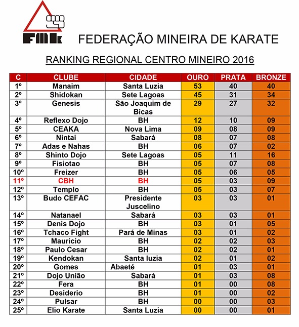 A equipe do CBH conquistou o 11° Lugar Geral do Ranking de 2016.