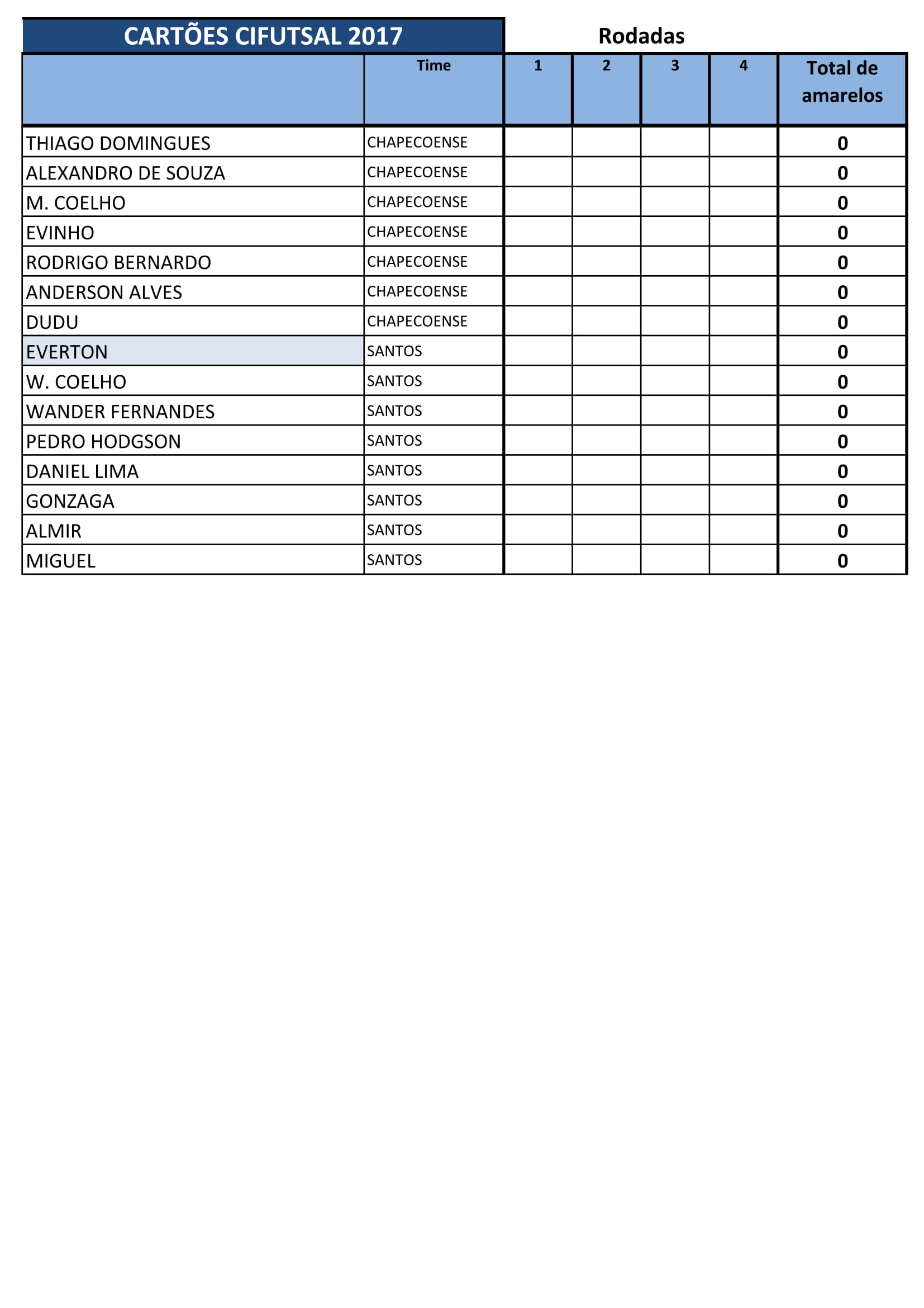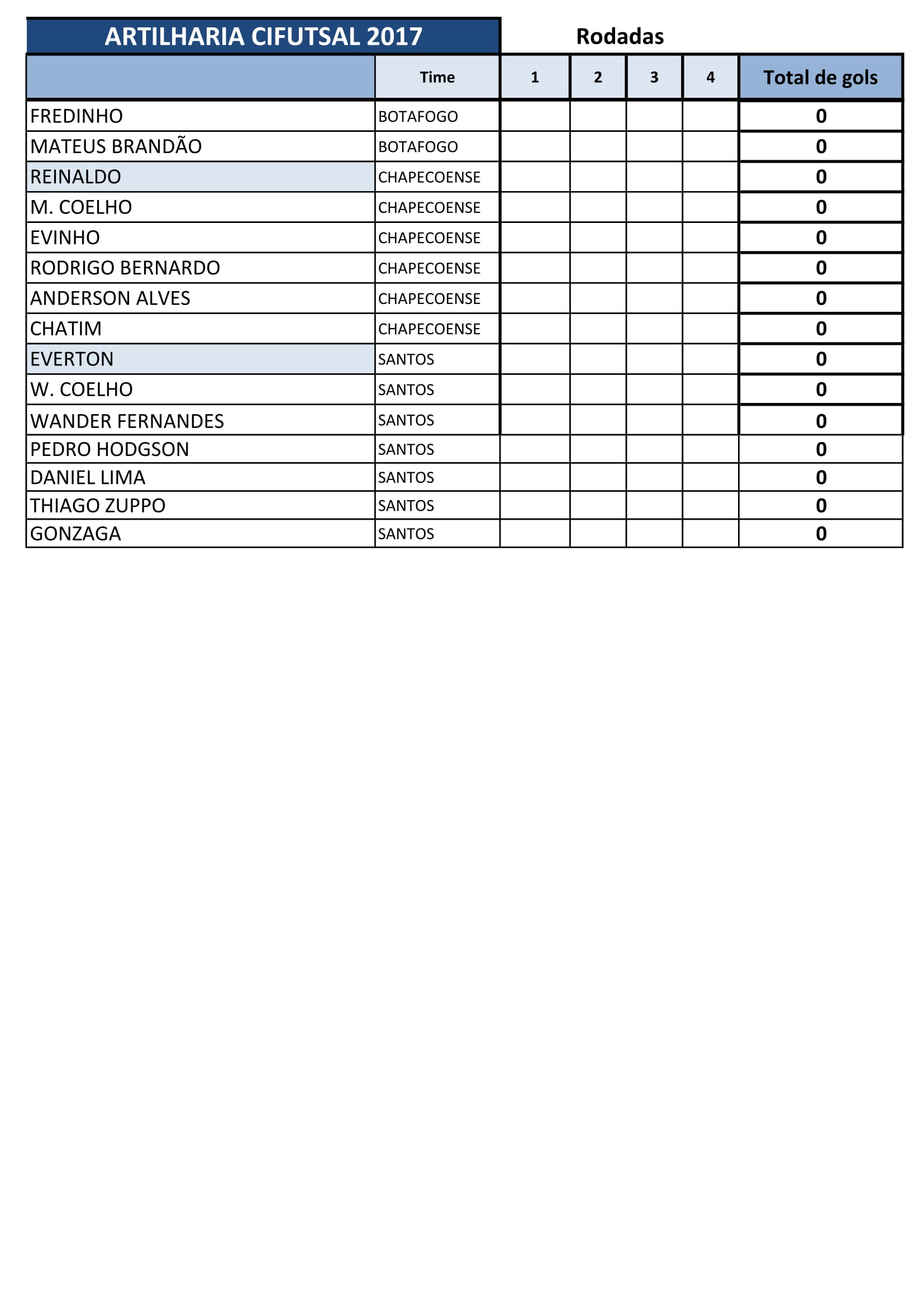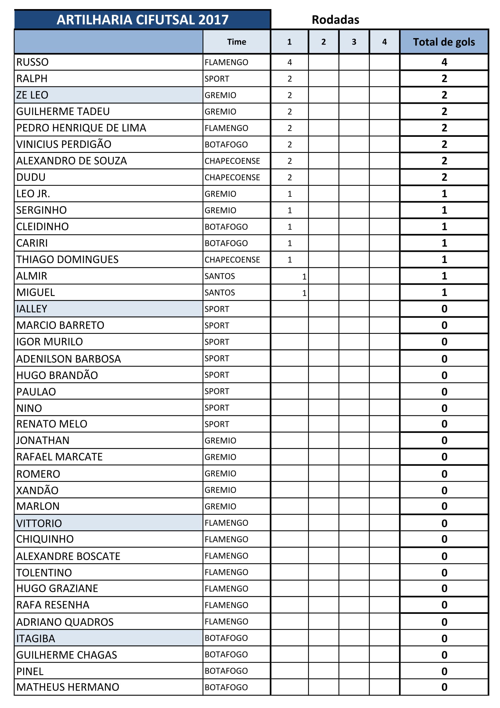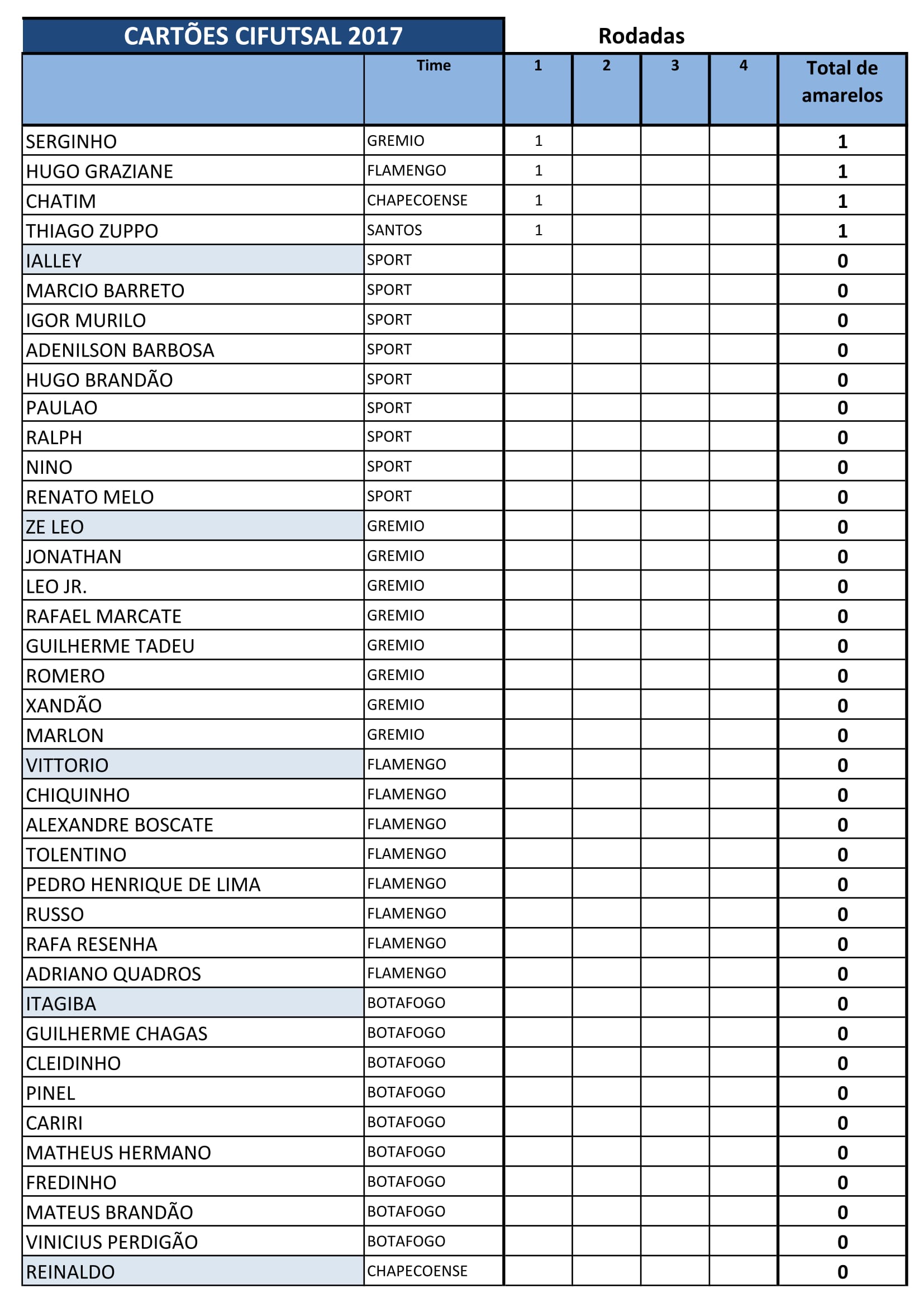 Confira a classificação desta primeira rodada: