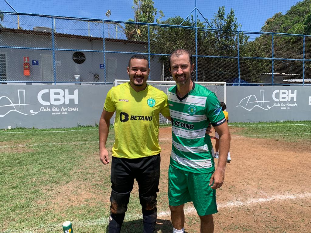 Bruno Baeta, capitão do Sporting, e Diogo Neves, goleiro do Sporting, pela categoria Master