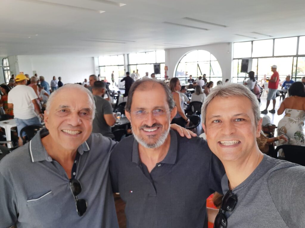 Marcolino de Oliveira, presidente da Fecemg, com Almir Caixeta, presidente do CBH, e Sérgio Fernando, sócio do clube e vereador de BH