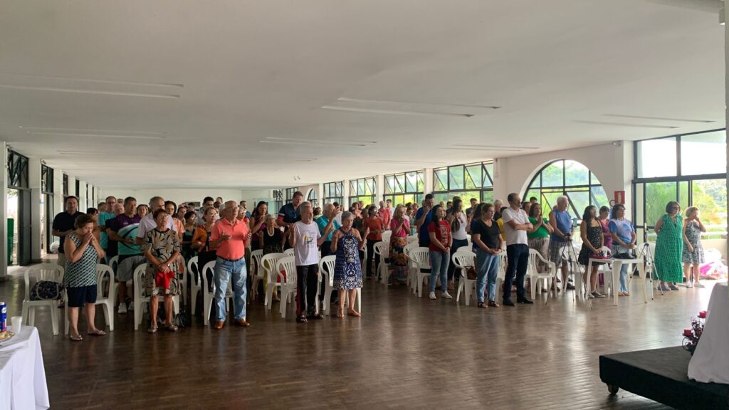 Presidida por Pe. Gilson, da comunidade Cresap, a Missa contou com a presença de sócios e familiares, que colocaram também intenções para pessoas queridas em suas orações.