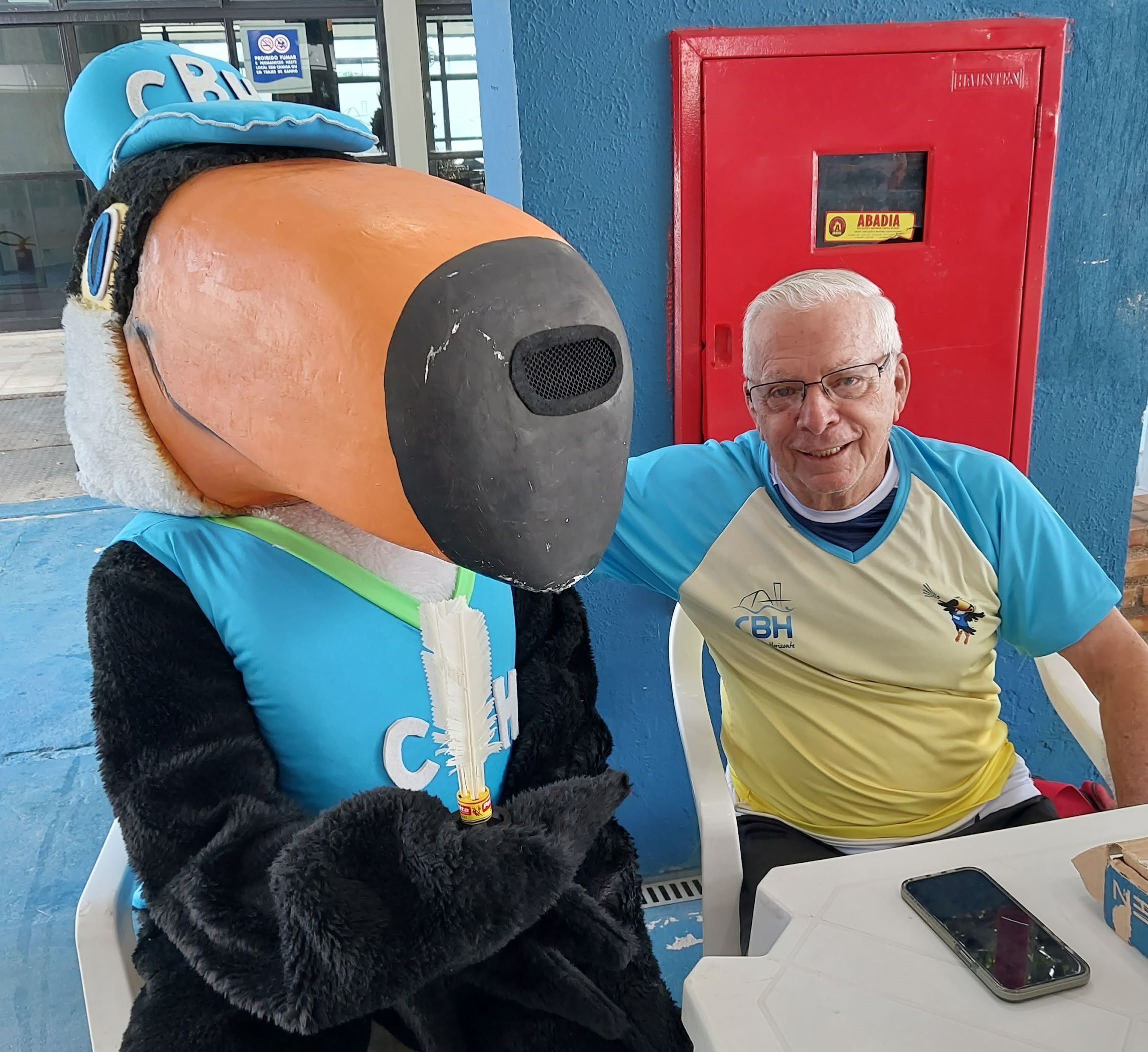 Assessor de Esportes Murilo Piló ao lado do Mascote Tucano do CBH